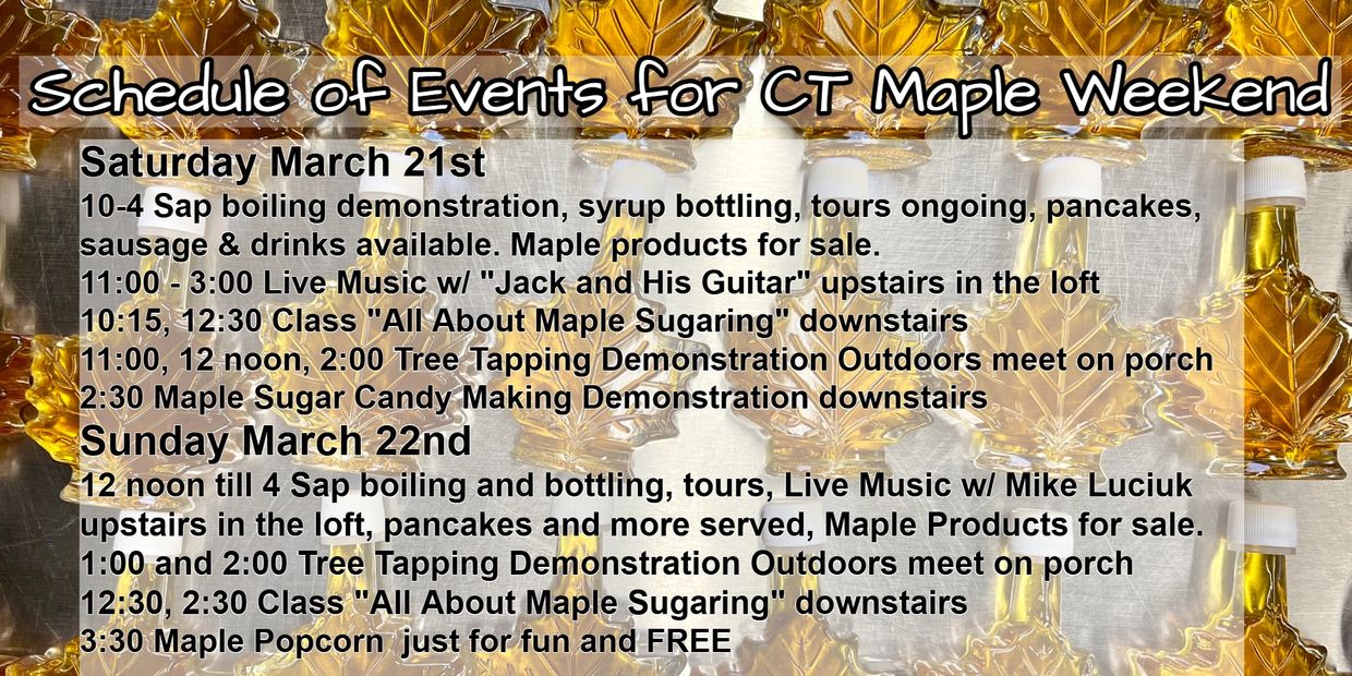 Come see how pure maple syrup is made with classes, tours and live demonstrations including tree tapping and sap boiling and LIVE music w/ "Jack and His Guitar", pancakes and more.